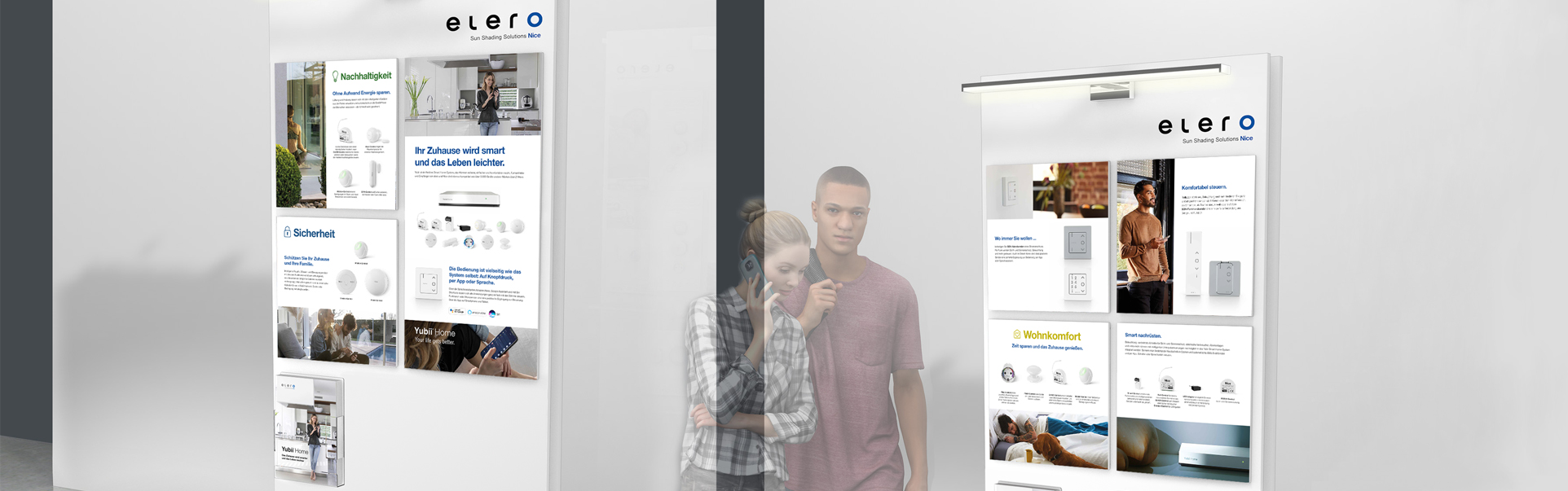 Nous vous fournirons en outre les brochures décrivant les avantages de nos produits. De cette façon, vous pouvez facilement fournir les informations adaptées correspondant aux exigences du client. Nous nous ferons un plaisir de préparer un ensemble individuel de brochures et de matériaux publicitaires pour vos événements ou salons commerciaux. Envoyez simplement un e-mail à marketing.elero@niceforyou.com.